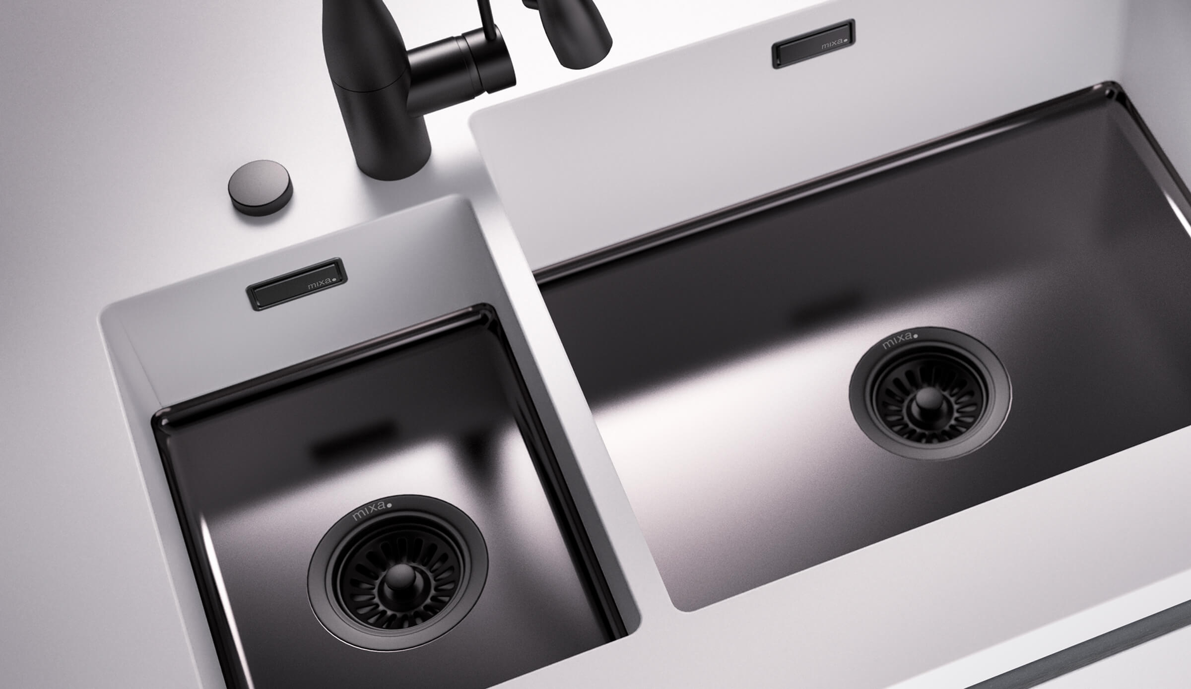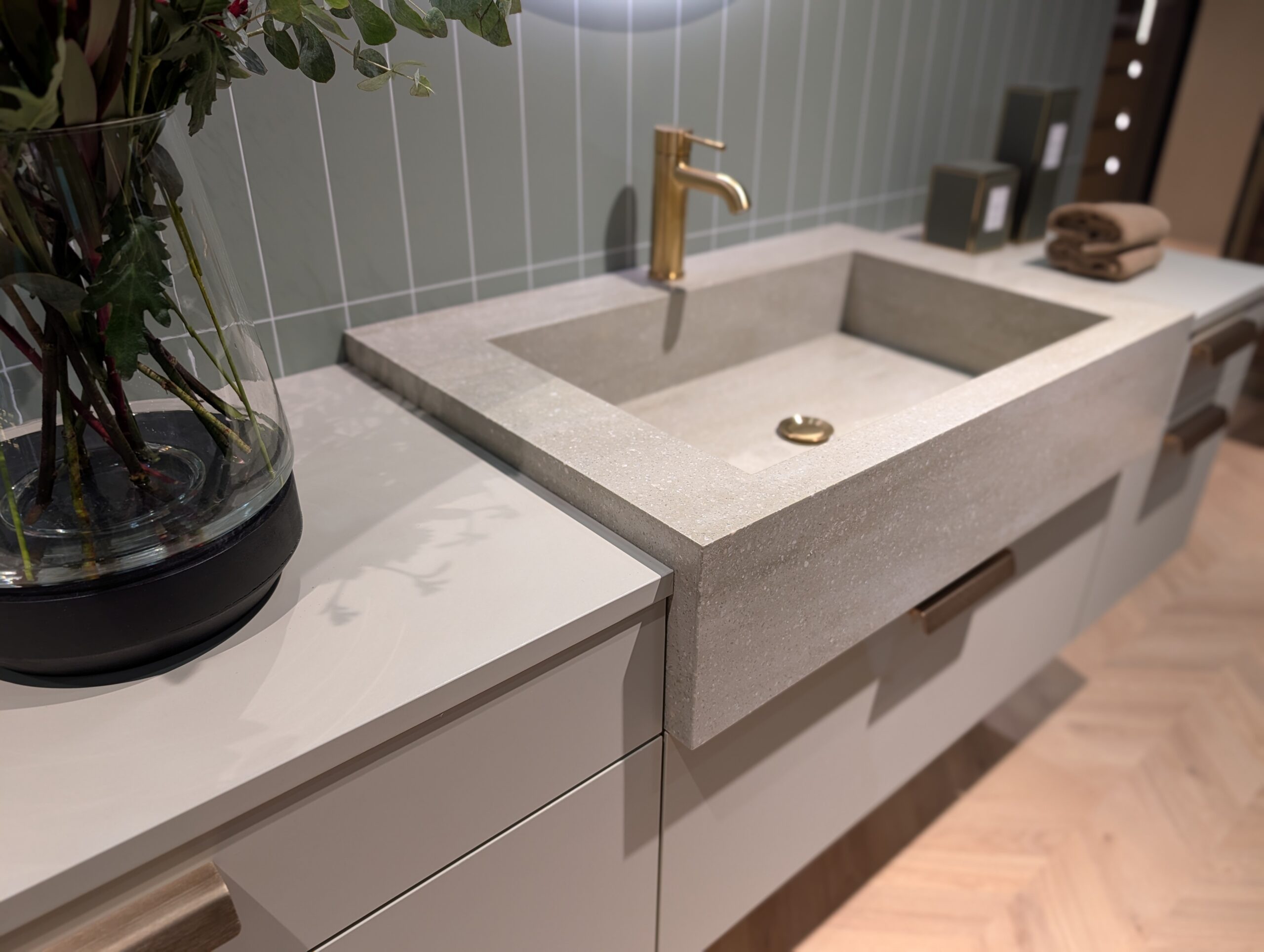 Vaskekummer limes og integreres direkte i benkeplaten, noe som gir et rent og moderne uttrykk – og gjør kjøkkenet mer hygienisk enn mange tradisjonelle løsninger.