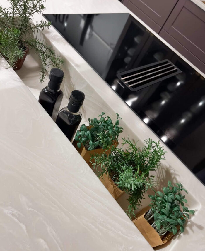 Hva med en nedfelt hylle til oppbevaring av urter og krydder praktisk plassert like bak platetoppen? Det er kun fantasien som setter grenser for hva som kan lages.