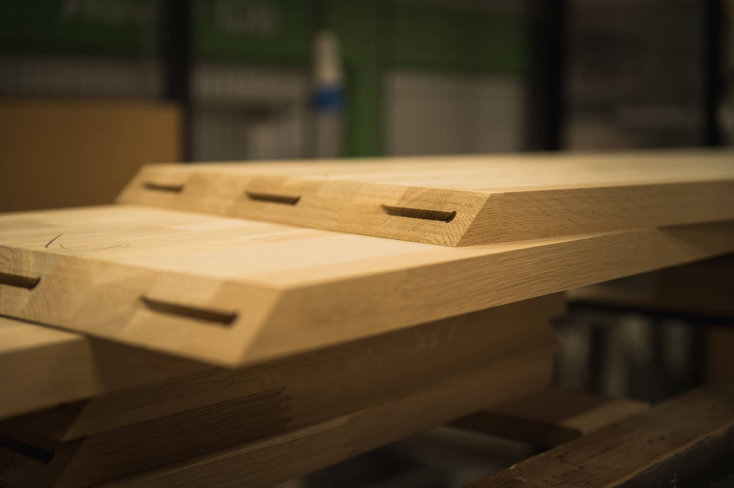 Benkeplatene kan leveres i lengder opptil 5 meter (6 meter på forespørsel), og tilpasses perfekt til ditt kjøkken. For sammenføyninger av vanger til topplater, tilbyr vi finish med gjæring eller fingerskjøt – slik at resultatet blir både solid og sømløst.
